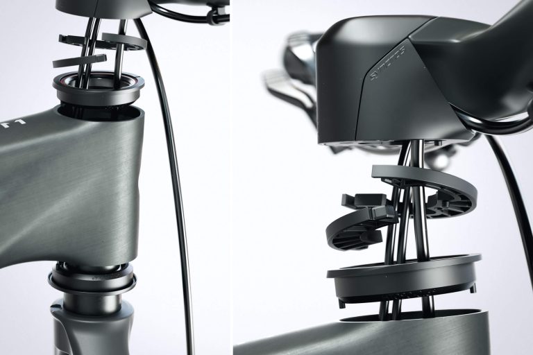 Kolo je opremljeno s pokrovi krmilnega ležaja, ki vam omogočajo izbiro med kotom krmilne cevi 65,0 ali 63,8 stopinje. Vsi modeli so prav tako dobavljeni z dodatnimi nevtralnimi pokrovi krmilnega ležaja, ki omogočajo kot krmilne cevi 64,4 stopinje. Izbirate torej lahko med kar tremi različnimi koti krmilnega ležaja.