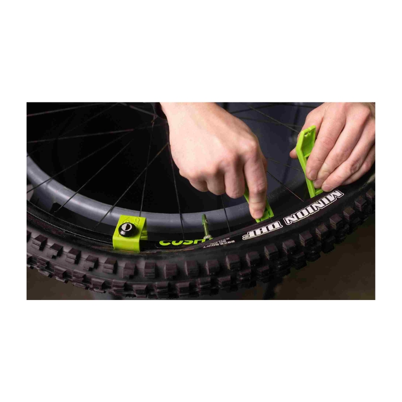 Orodje za montažo plaščev CUSHCORE Bead Bro, je vaš novi pomočnik pri montaži tubeless insertih Cushcore. Zasnovano je za držanje plašča na mestu in vam omogoča uporabo obeh rok.